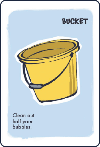 Be the first player to lose all your 6 bubble tokens. Use action cards to gain an edge, protect yourself, or disrupt others.