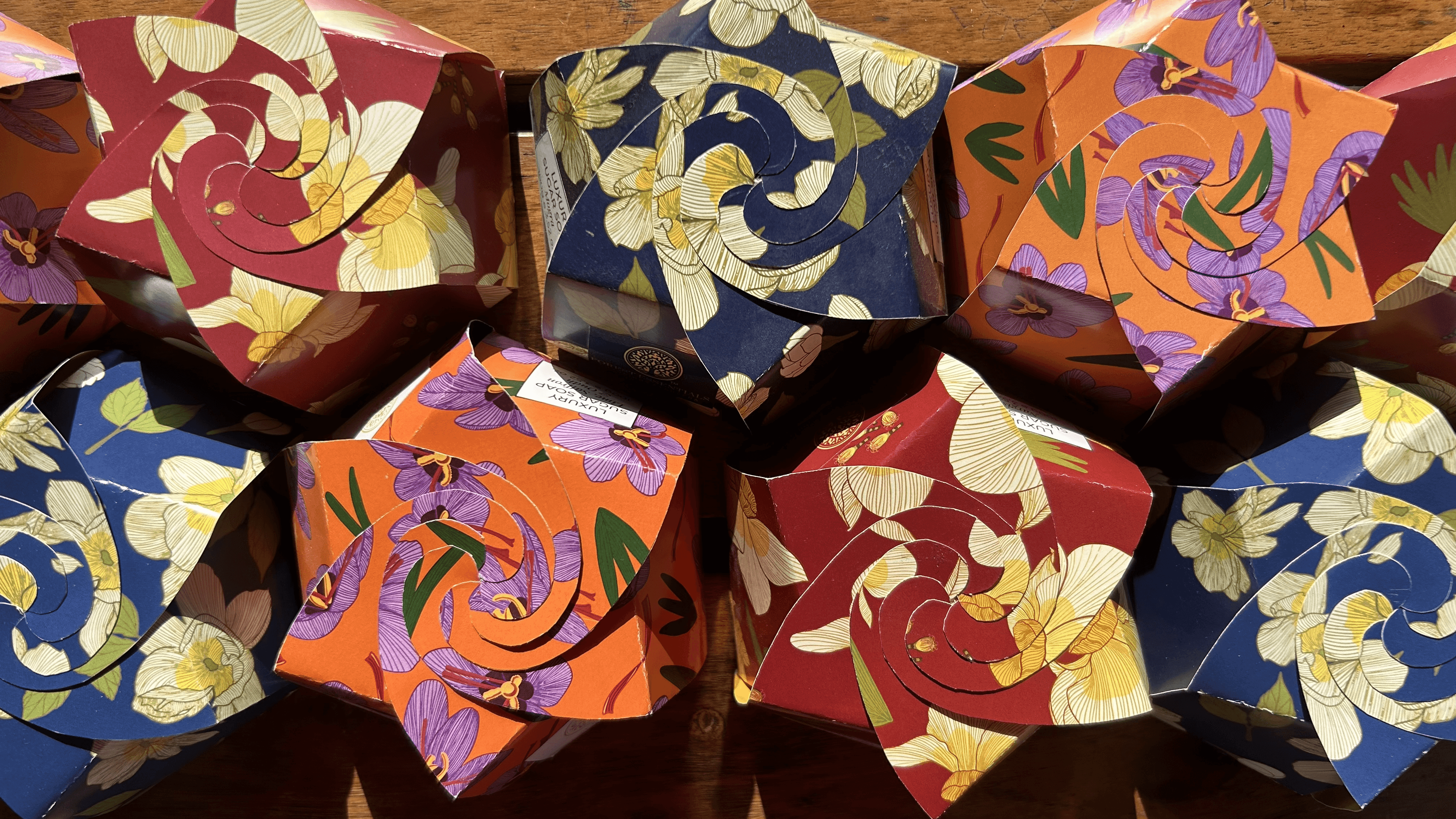 The packaging design is inspired by the natural process of a bud opening into a flower. This gives the user an unboxing experience that feels organic, intuitive and luxurious. The design reflects the soaps themselves, which are made with all-natural ingredients like botanicals and florals.
